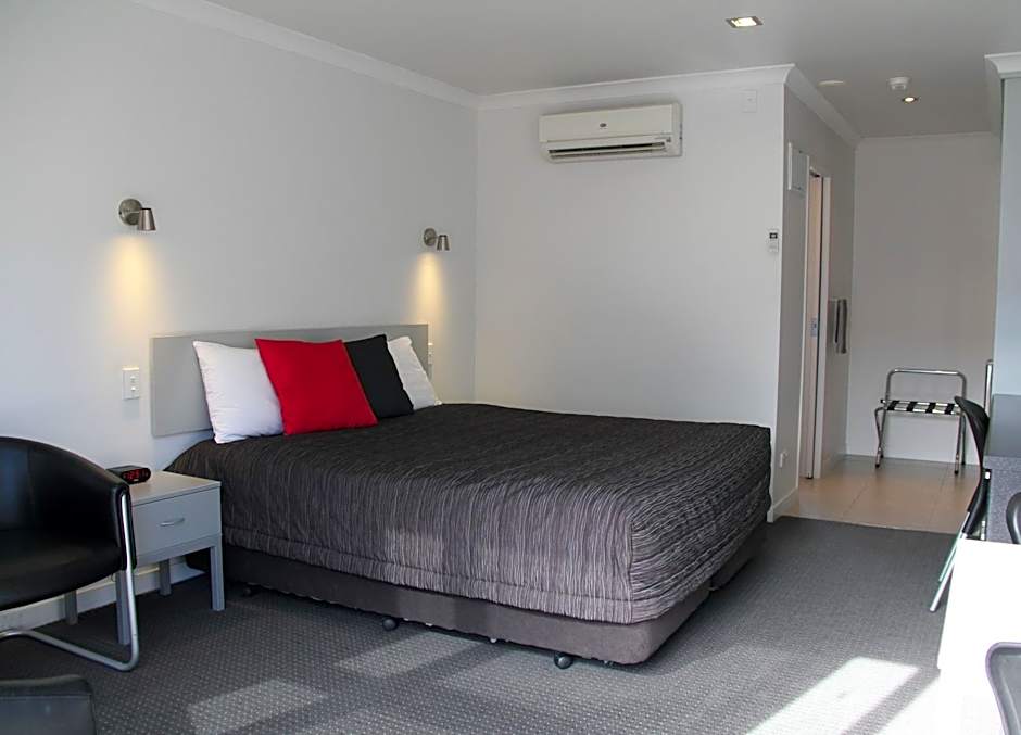 This unit has a king bed and single bed with air conditioning, a kitchenette and bathroom.